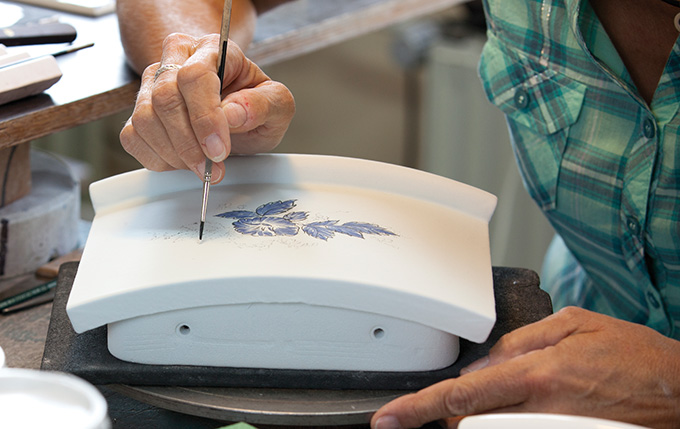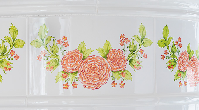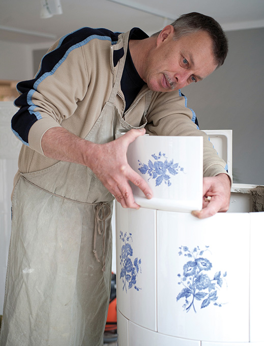 ![]() Under produktionen af Reimanns KRONA er kakkelovnene malet med majolika. Teknikken går ud på at male motivet direkte på den ubrændte glasur. Ud over stor dygtighed kræver majolika-maleri kunstnerens højeste koncentration og præcision. Hvert penselstrøg skal være rigtigt – fejl kan ikke rettes. Vores erfarne kunstnere mestrer de høje krav og leverer perfekte kunstværker – smukke og helt unikke kakler. |